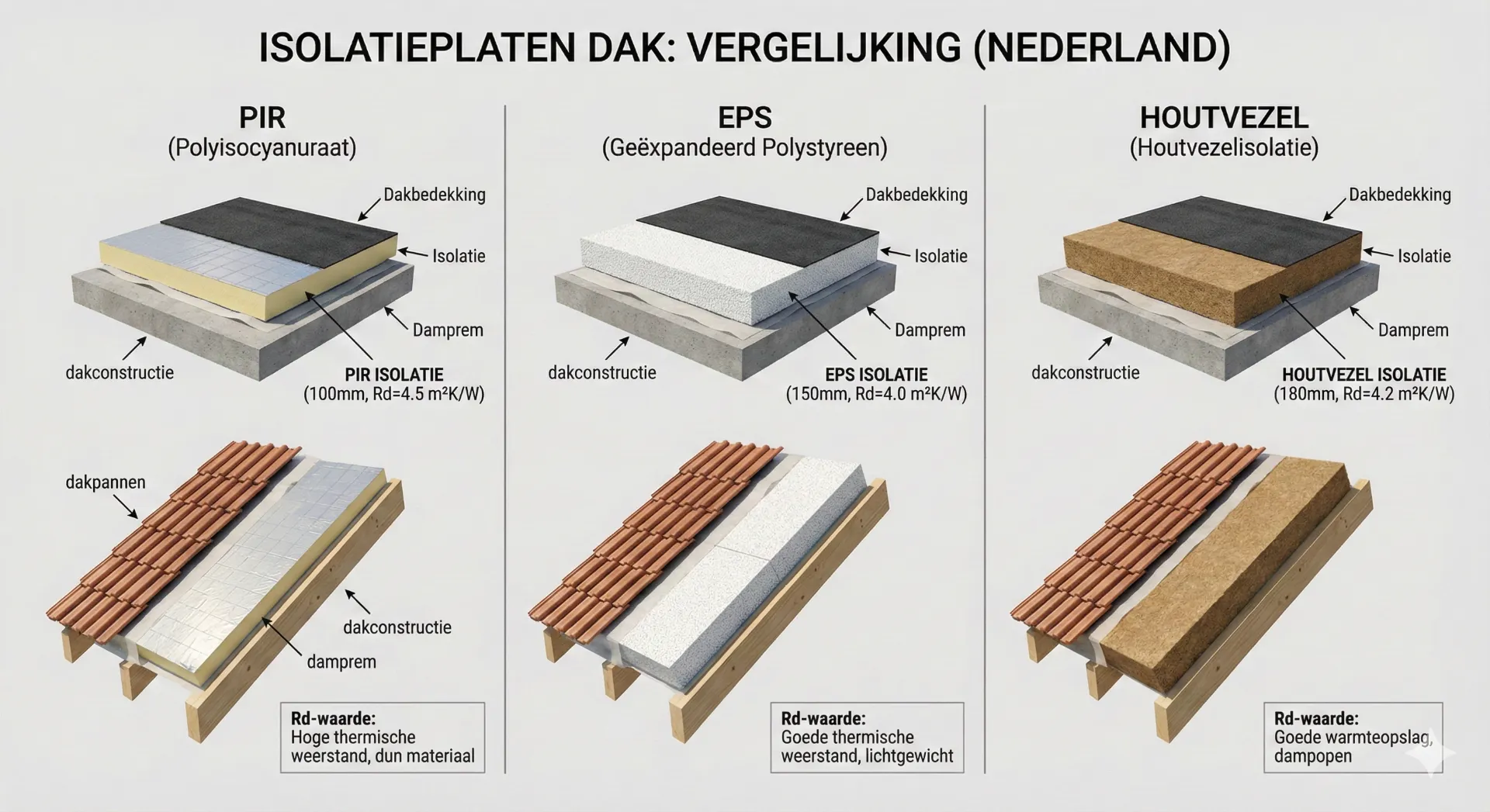 Let op: PIR haalt hogere Rd bij minder dikte dan EPS.